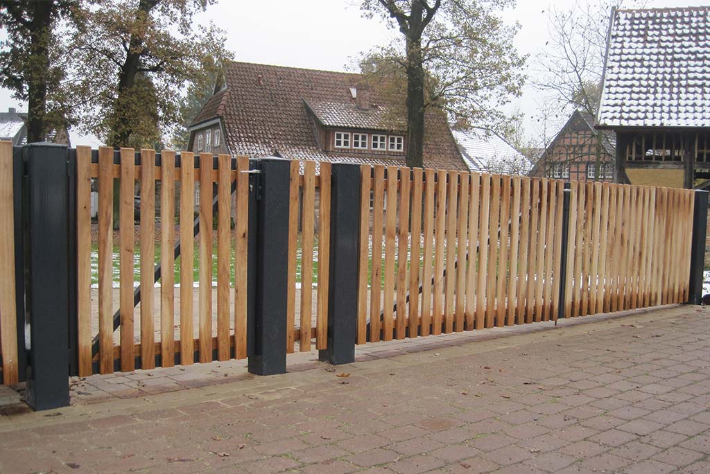Bohlenzaun Eiche mit Pfosten